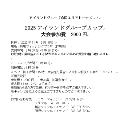 アイランドカップ第3戦 2025年11月16日 川場フィッシングプラザ ネットエントリー